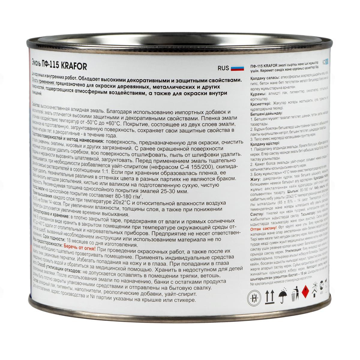 Эмаль ПФ-115 универсальная Krafor, алкидная, глянцевая, 1,8 кг, черная