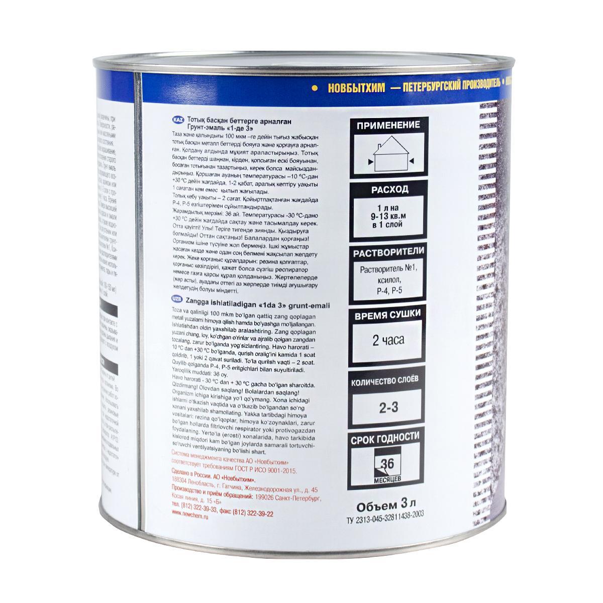 Грунт-эмаль по ржавчине 3 в 1 Новбытхим, 3 л, голубая