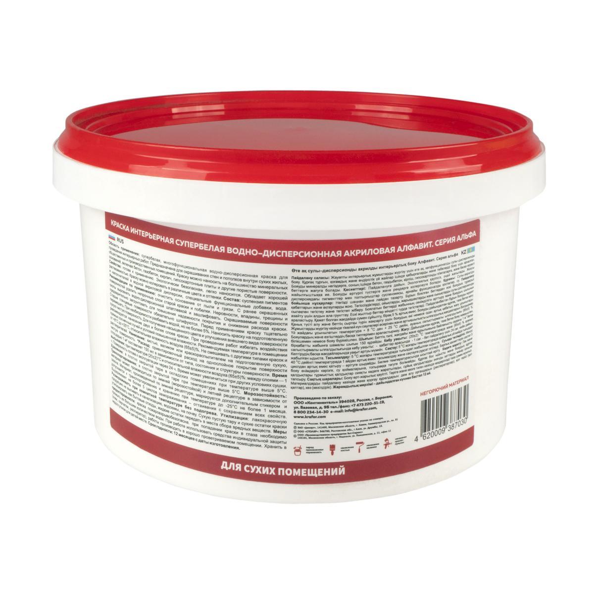 Краска интерьерная водно-дисперсионная Alfavit серия Альфа, супербелая, 3 кг