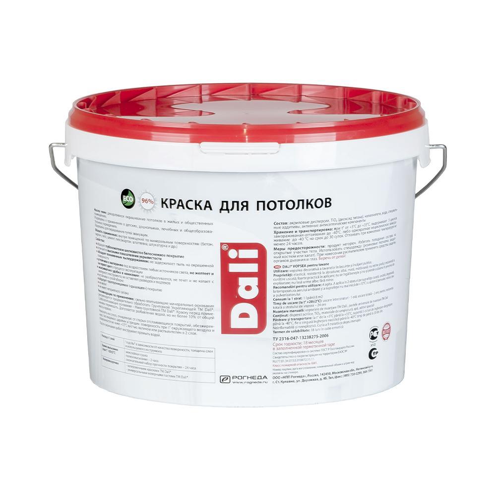 Краска для потолков Dali, акриловая, глубокоматовая, снежно-белая, 9 л