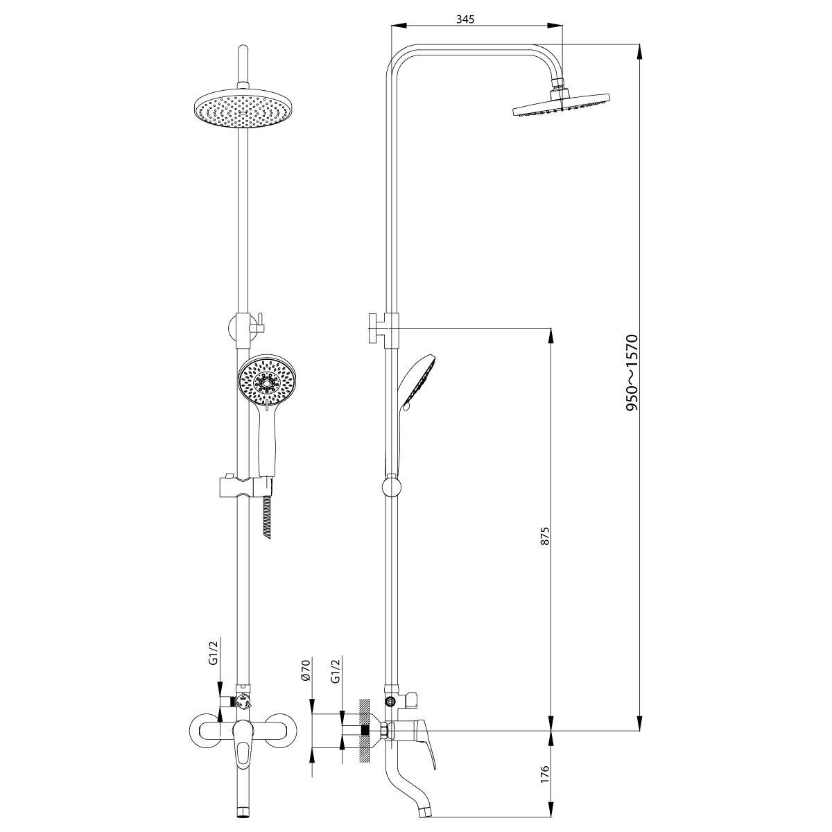 Смеситель Для Ванн B35-46 Лейка 3 Реж., Верхн.душ "тропич. Дождь", Излив 70 Мм "rossinka"
