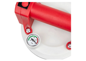 Максимальная сила вибрации равна нагрузке в 100кг. Диаметр чаши 112мм. Разряжение в ней (вакуум) создается и снимается одним нажатием рукояти. Изготавливается из прочного технического полимера. Эргономичная рукоятка разработана для большего удобства и безопасности работ.