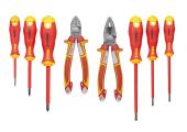 Felo Набор диэлектрических отверток Ergonic с диэлектрическими пасатижами, бокорезами, ножом для снятия изоляции и отверткой тестером сети, 9 шт 41399504