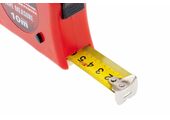 Рулетка Ergonomisch торговой марки GROSS с длиной ленты 5 м. Эргономичный корпус рулетки выполнен из ABS-пластика (используется сырье BASF), который сохраняет работоспособность механизма при падении с высоты до 1,5 м. Измерительное полотно рулетки шириной 19 мм обладает высокими упругими свойствами, что позволяет производить измерения в труднодоступных местах. Основание измерительного полотна оснащено обрезиненным магнитным зацепом True Zero (истинный ноль), который обеспечивает фиксацию не только на ровных, но и на округлых поверхностях (например, на трубах). Зацеп True Zero позволяет более точно производить замеры от нуля при внешних/внутренних замерах.
