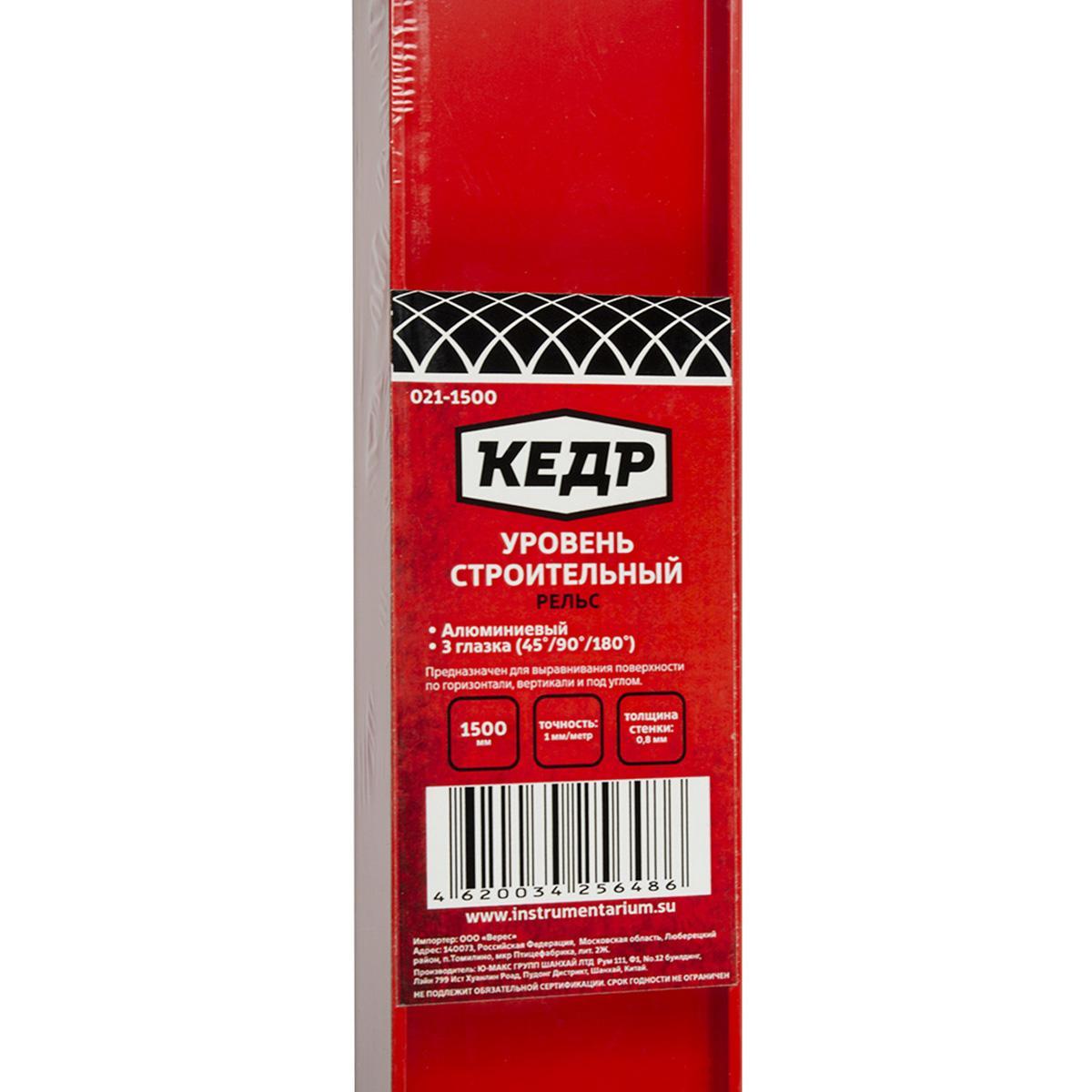 Уровень строительный Кедр, рельсовый, 3 глазка, 1500 мм