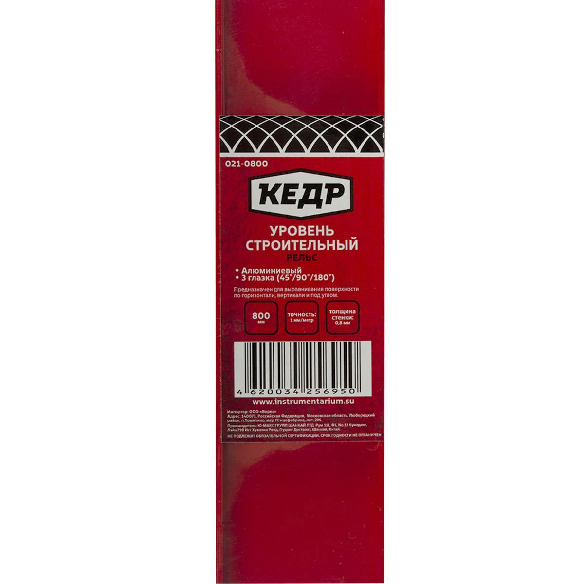 Уровень строительный Кедр, рельсовый, 3 глазка, 800 мм