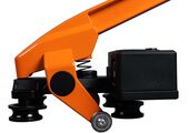 Каретка огибает направляющую с двух сторон, что предотвращает "перекашивание" при сильном давлении. Режущие ролики из карбида вольфрама с титановым покрытием имеют диаметр 22 мм. Они обеспечивают чистый и ровный разрез плитки.