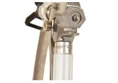 Поворот реверсивного сопла на 1800 с последующей продувкой краской под давлением, позволяет устранить засор во время работы (рекомендуется перед поворотом сопла ослабить гайку соплодержателя). Сопло обозначается тремя цифрами. Первая цифра указывает на величину угла факела распыления в десятках градусов, т.е., чем больше цифра, тем более широкий получается факел, следовательно, можно покрыть краской более широкий участок окрашиваемой поверхности за один проход. Оставшиеся цифры указывают на величину диаметра сопла в тысячных долях дюйма.