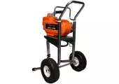 В устройстве задействован мощный поршневой насос с приводом от бесщеточного электродвигателя мощностью 1500 Вт. Он способен создавать рабочее давление вплоть до 220 Бар, что обеспечивает возможностью проведения покрасочных работ на расстоянии до 60м от местоположения агрегата. Для транспортировки лакокрасочной жидкости используется специальный шланг.
