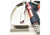 Поворот реверсивного сопла на 1800 с последующей продувкой краской под давлением, позволяет устранить засор во время работы (рекомендуется перед поворотом сопла ослабить гайку соплодержателя). Сопло обозначается тремя цифрами. Первая цифра указывает на величину угла факела распыления в десятках градусов, т.е., чем больше цифра, тем более широкий получается факел, следовательно, можно покрыть краской более широкий участок окрашиваемой поверхности за один проход. Оставшиеся цифры указывают на величину диаметра сопла в тысячных долях дюйма.