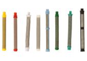 Правильно подобранный фильтр - это залог успеха. Красный 100 Mesh (размер ячеек 0,14 мм). Фильтр предназначен для установки в ручку окрасочного пистолета безвоздушного распыления и служит для тонкой фильтрации краски. Краска перед поступлением в фильтр тонкой очистки уже проходит через фильтр грубой очистки (на заборном шланге), фильтр предварительной очистки (в колбе узла заполнения насоса, у поршневых аппаратов). Фильтр состоит из пластмассового цилиндра с круглыми отверстиями на поверхности обтянутого металлической сеткой.