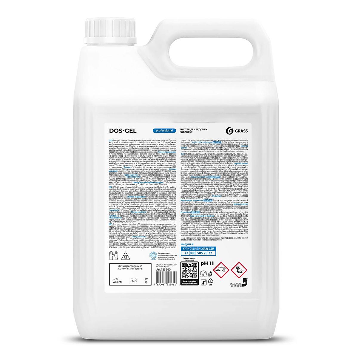 Дезинфицирующий чистящий гель Grass Dos-gel, щелочной, 5,3 кг