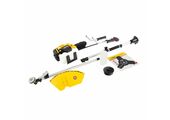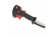 - В зависимости от рельефа местности и плотности растительного покрова предусмотрена быстрая замена режущего инструмента: стальной режущий диск, предназначенный для работы с жесткой травой и молодым кустарником, меняется на режущую полуавтоматическую триммерную катушку с леской для скашивания травы.