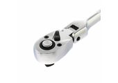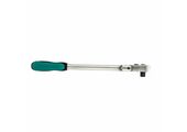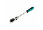 Для удобства работы ключ-трещотка оснащен запатентованным механизмом ступенчатой фиксации телескопической рукоятки. Изготовлен из хромованадиевой стали, трещотка – 72 зуба, реверс.