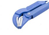 Ключ трубный рычажный типа S усиленной конструкции, применяется при повышенных нагрузках. Предназначен для захватывания и вращения труб и соединительных частей трубопроводов. Изготовлен из высококачественной хромванадиевой стали. Имеет порошковое антикоррозийное покрытие. Губки дополнительно закалены токами высокой частоты до твердости 57–60 HRс. Прогрессивная форма зуба с наклоном против направления вращения обеспечивает самоблокируемый захват деталей. Верхняя ручка имеет выштампованный Т-образный профиль. Регулировочная гайка снабжена стопорным кольцом.