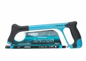 Ножовка по металлу "PIRANHA" торговой марки GROSS изготовлена из прочного алюминиевого сплава. Поверхность ножовки покрыта дополнительным слоем эмали, который защищает металл от воздействия окружающей среды. Обрезиненная рукоятка удобно и надежно фиксируется в руке, тем самым повышая эффективность инструмента в работе. Рычажно-винтовой механизм натяжения полотна расположен непосредственно под рукояткой. Усилие, с которым можно зафиксировать полотно, составляет 170 KGF, что позволяет эффективно контролировать давление полотна на заготовку и обеспечивает прямой, точный и ровный пропил. Ножовка комплектуется биметаллическим полотном. Длина полотна 300 мм, шаг зуба 24 TPI (24 зуба на дюйм, 1 дюйм = 2,54 см). Конструкция ножовочной рамки позволяет устанавливать полотно под углом 45° и 90°.