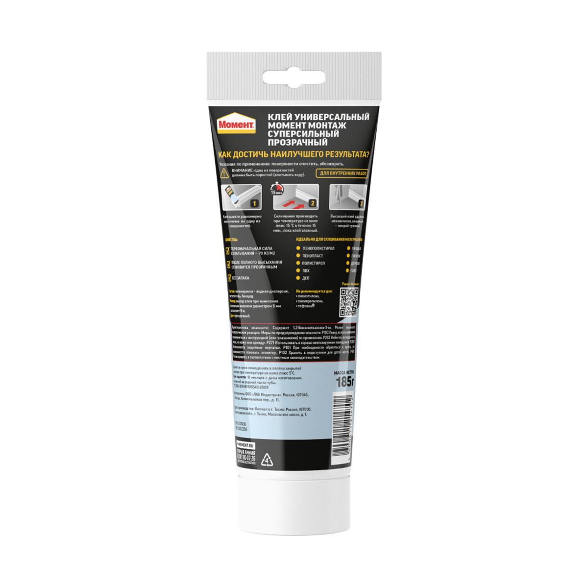 Клей монтажный Момент Монтаж Суперсильный МВп-70, 185 г, прозрачный