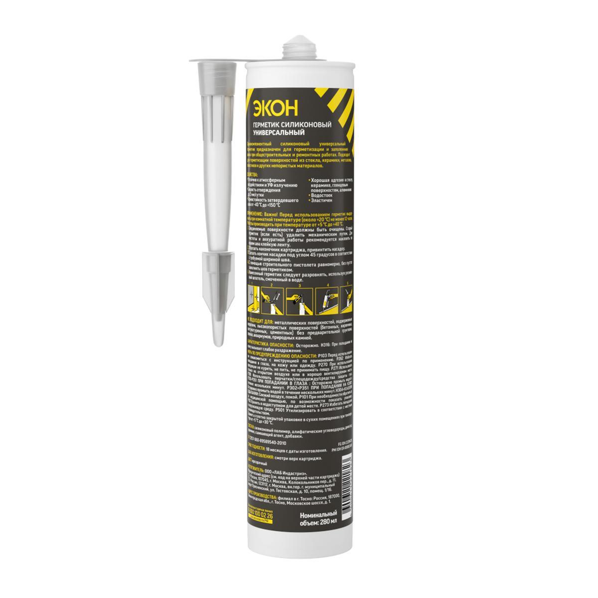 Герметик силиконовый Экон универсальный, 280 мл, прозрачный