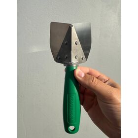 Главная идея инструмента - идеально острый угол за одно движение, а также - возможность в кратчайший срок подготовить трёхгранные углы (сопряжение двух стен и потолка). Этот инструмент прекрасно подходит для создания идеальных углов, что особенно важно в работе с гипсокартоном и другими строительными материалами. Благодаря своему дизайну, шпатель легко справляется с различными типами шпатлёвок, а его компактные размеры позволяют добраться даже до самых труднодоступных мест.