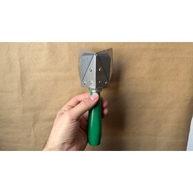 Главная идея инструмента - идеально острый угол за одно движение, а также - возможность в кратчайший срок подготовить трёхгранные углы (сопряжение двух стен и потолка). Этот инструмент прекрасно подходит для создания идеальных углов, что особенно важно в работе с гипсокартоном и другими строительными материалами. Благодаря своему дизайну, шпатель легко справляется с различными типами шпатлёвок, а его компактные размеры позволяют добраться даже до самых труднодоступных мест.