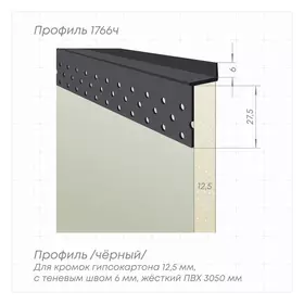 Профиль ПЕРФЕКТ ЛАЙН ПВХ 1766-ч для теневого потолка, зазор 6 мм (черный) 3,05м