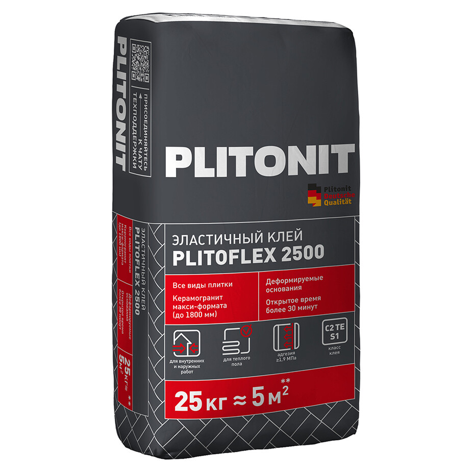 Клей для плитки/ керамогранита/ камня Plitonit PlitoFlex 2500 эластичный серый класс C2 TE S1 25 кг