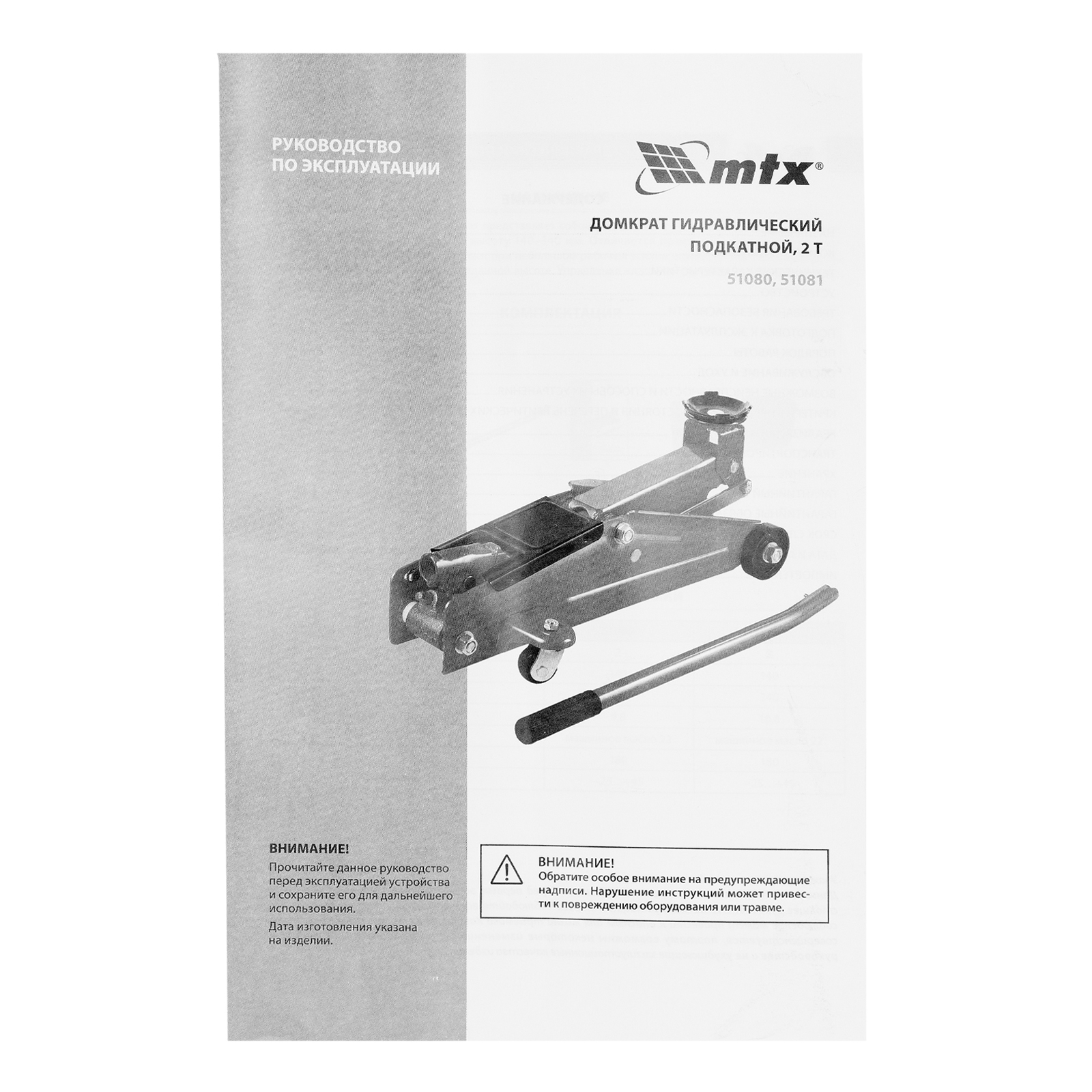 Домкрат гидравлический подкатной, 2 т, 140-340 мм MTX