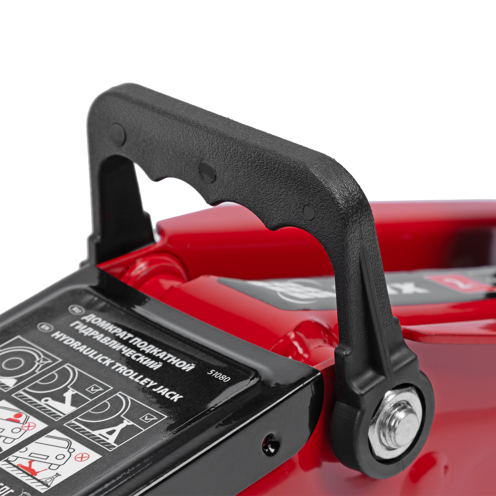 - Безопасность — клапан сброса избыточного давления защищает домкрат от перегрузки, предотвращая подъем груза массой более 2 т.
