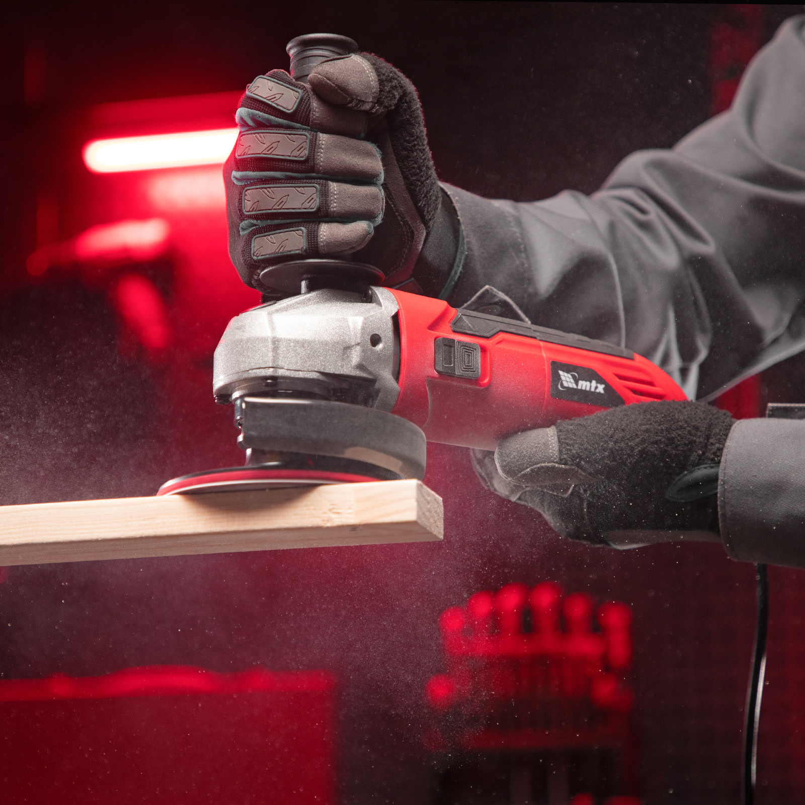 Угловая шлифовальная машина MTX MAG125-800 26981 мощностью 800 Вт предназначена для выполнения зачистных работ, резки плитки, металла, камня, пластика и решения других задач с использованием оснастки диаметром 125 мм. Инструмент обеспечивает частоту вращения оснастки 12000 об/мин. Ключ для установки и замены насадок входит в комплект поставки.
