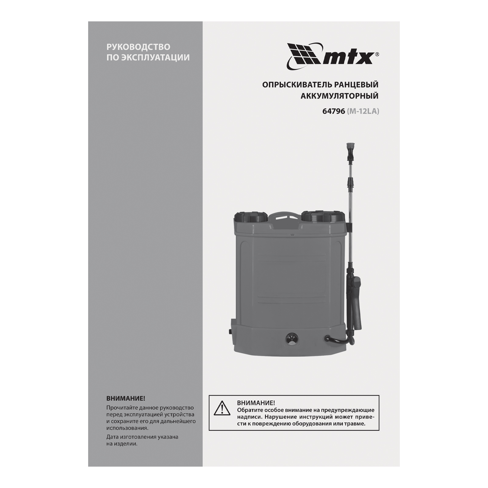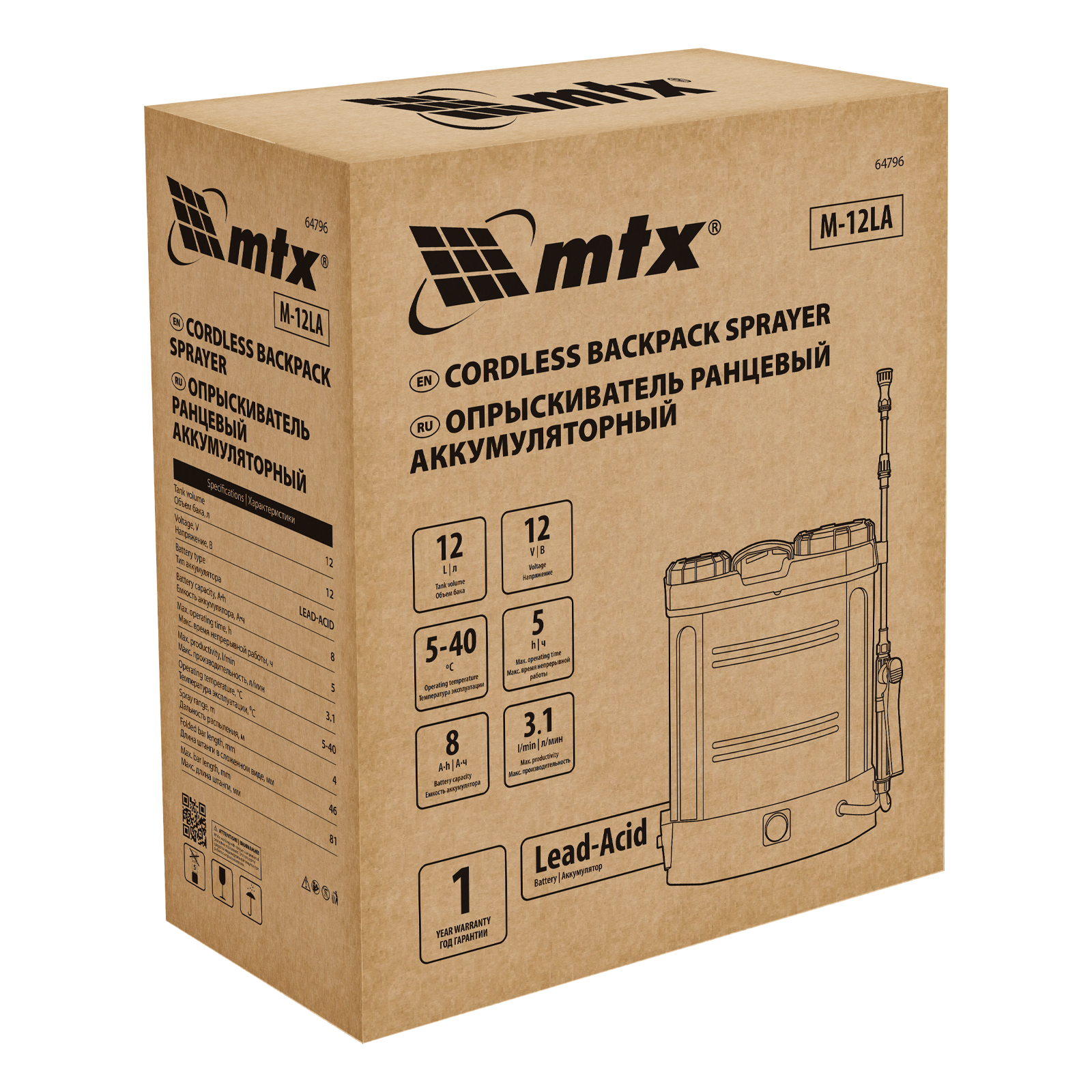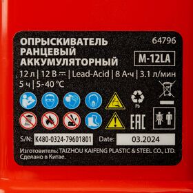 Опрыскиватель ранцевый аккумуляторный M-12LA, 12 л, 12 В, 8 Ач MTX